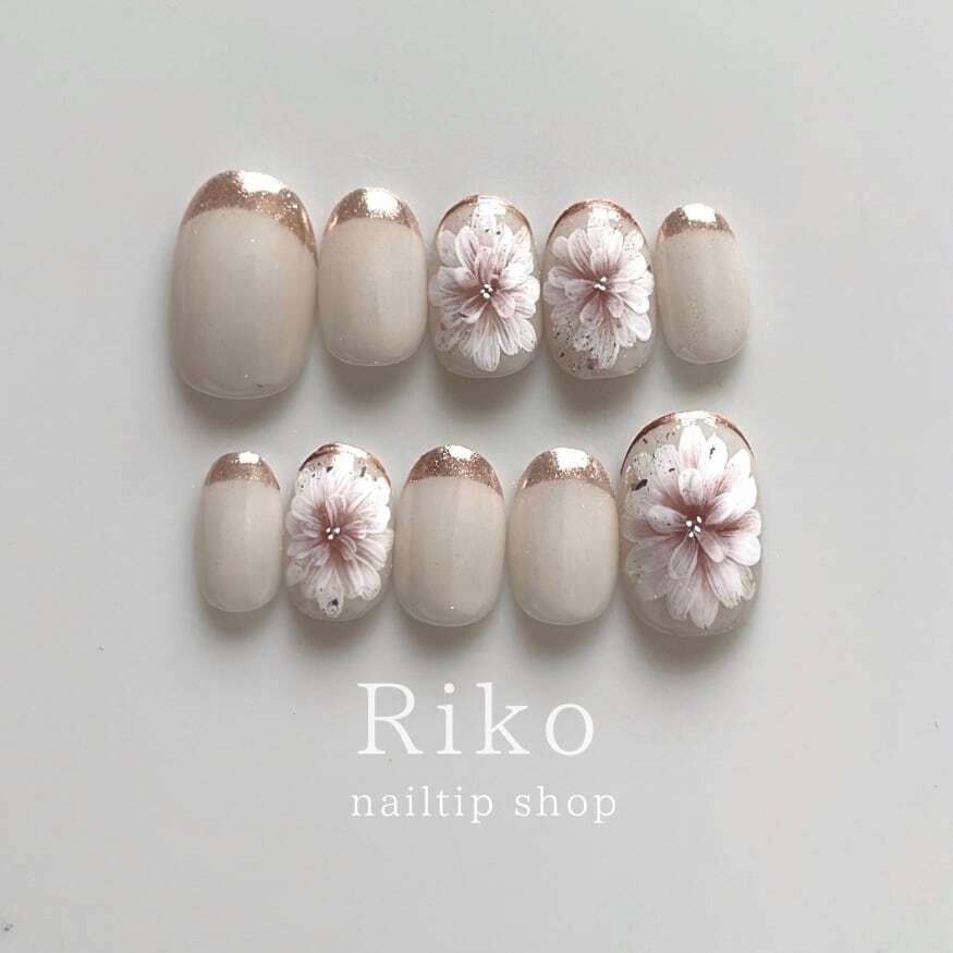 ネイルチップ ブライダル ウエディング 結婚 フラワー レース 花嫁 フレンチ ダリア