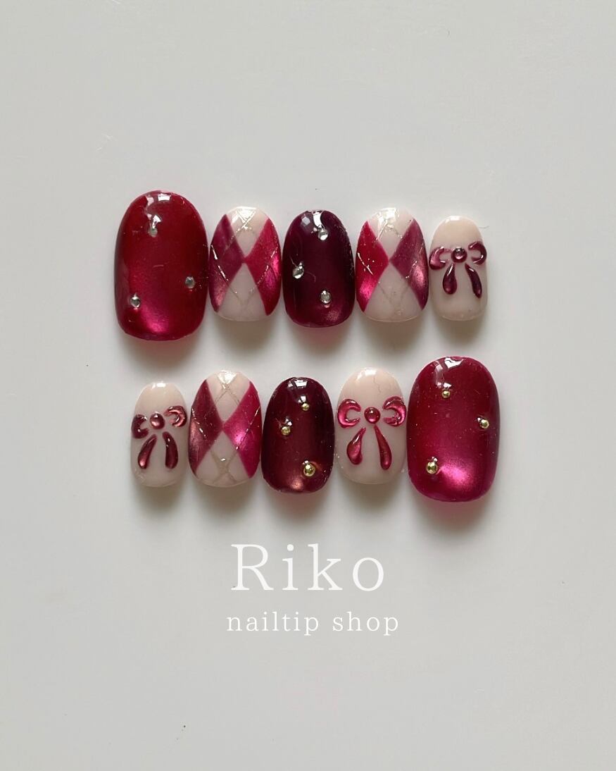 ネイルチップ バレンタイン マグネット ツイード 冬 リボン