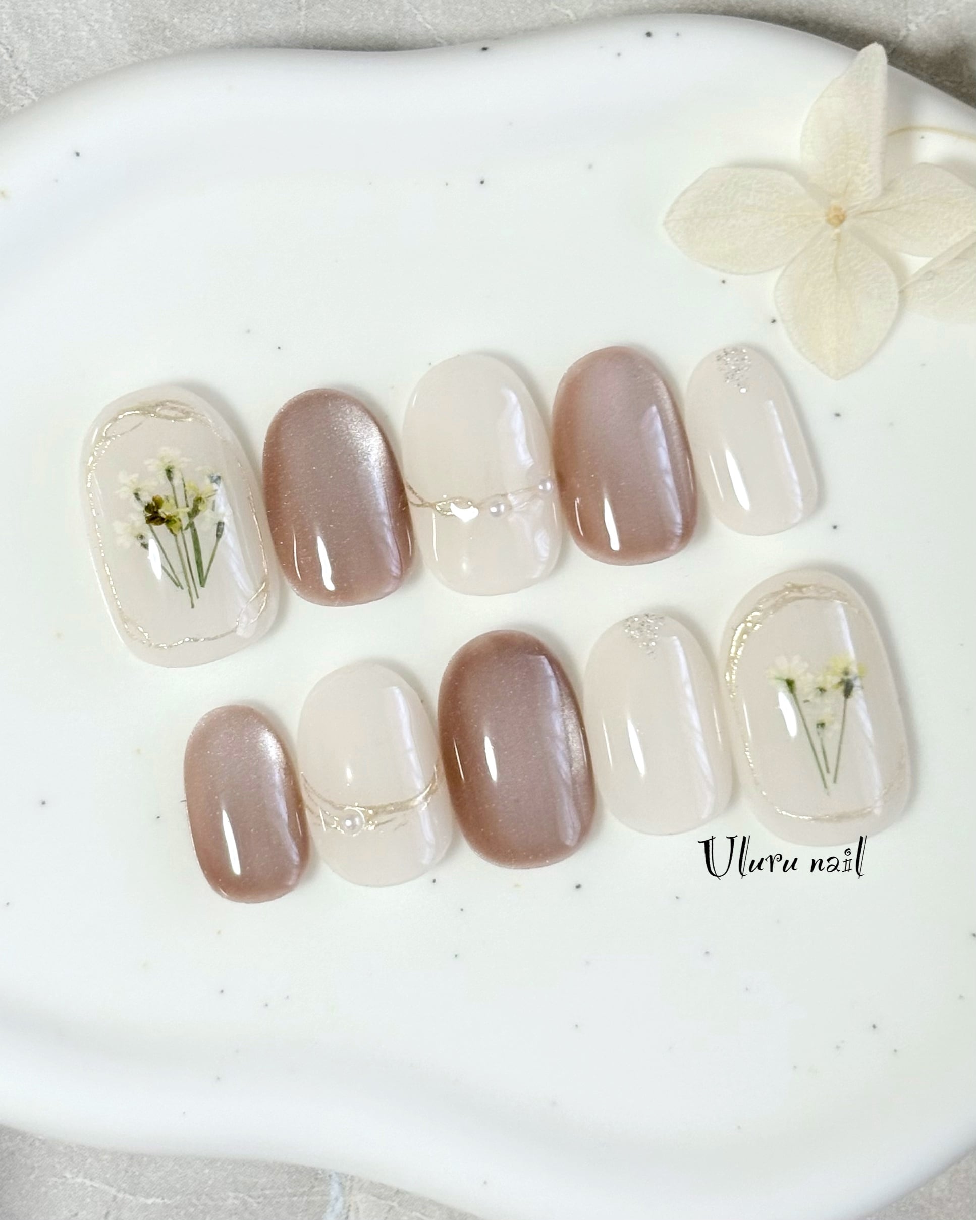 ✳︎ 当店のニュアンスネイルチップは、ひとつひとつ違った雰囲気を持つ、お客様だけの特別なデザインです。大切な瞬間を彩るネイルチップを、一粒一粒、制作から梱包まで心を込めてお届けします。