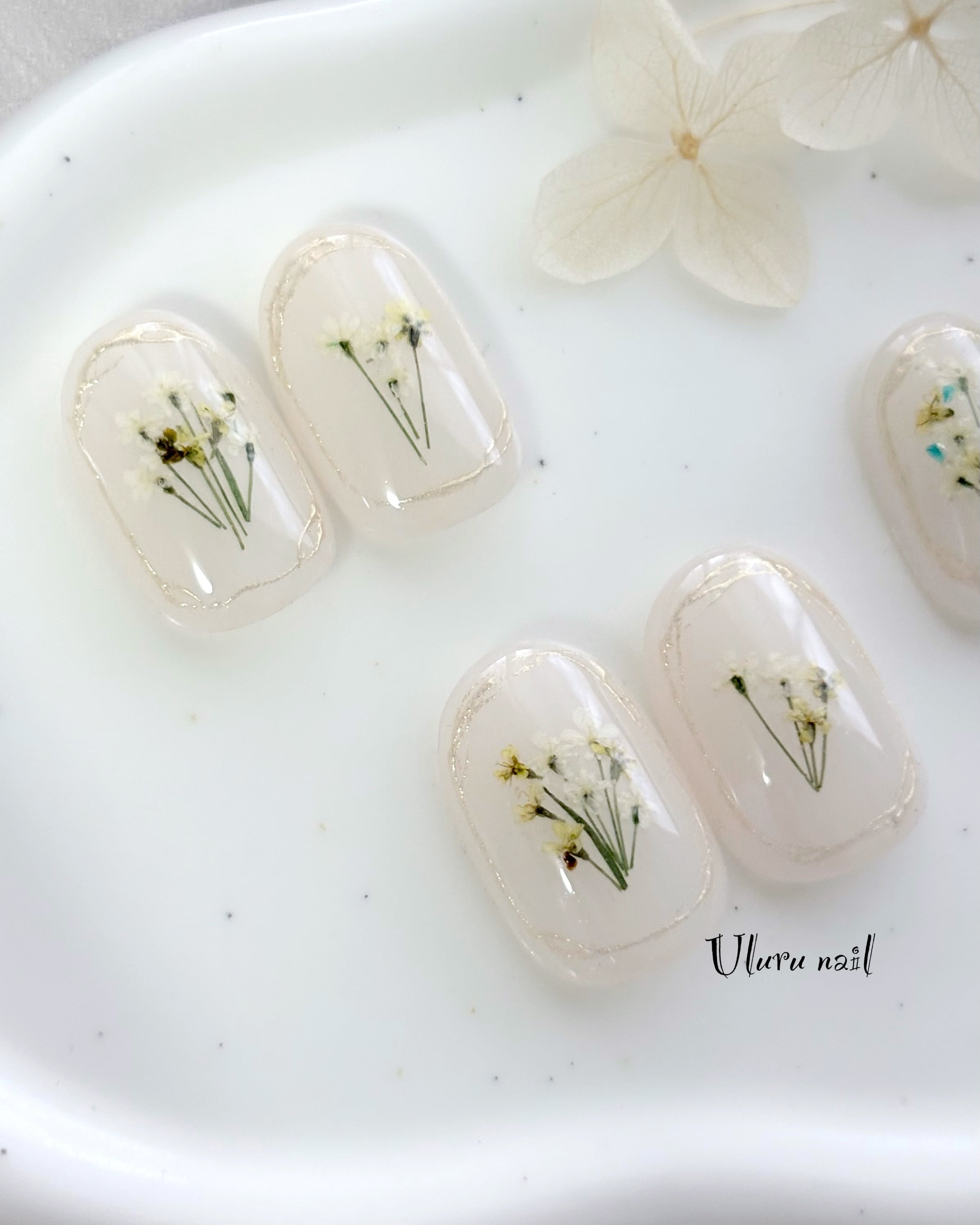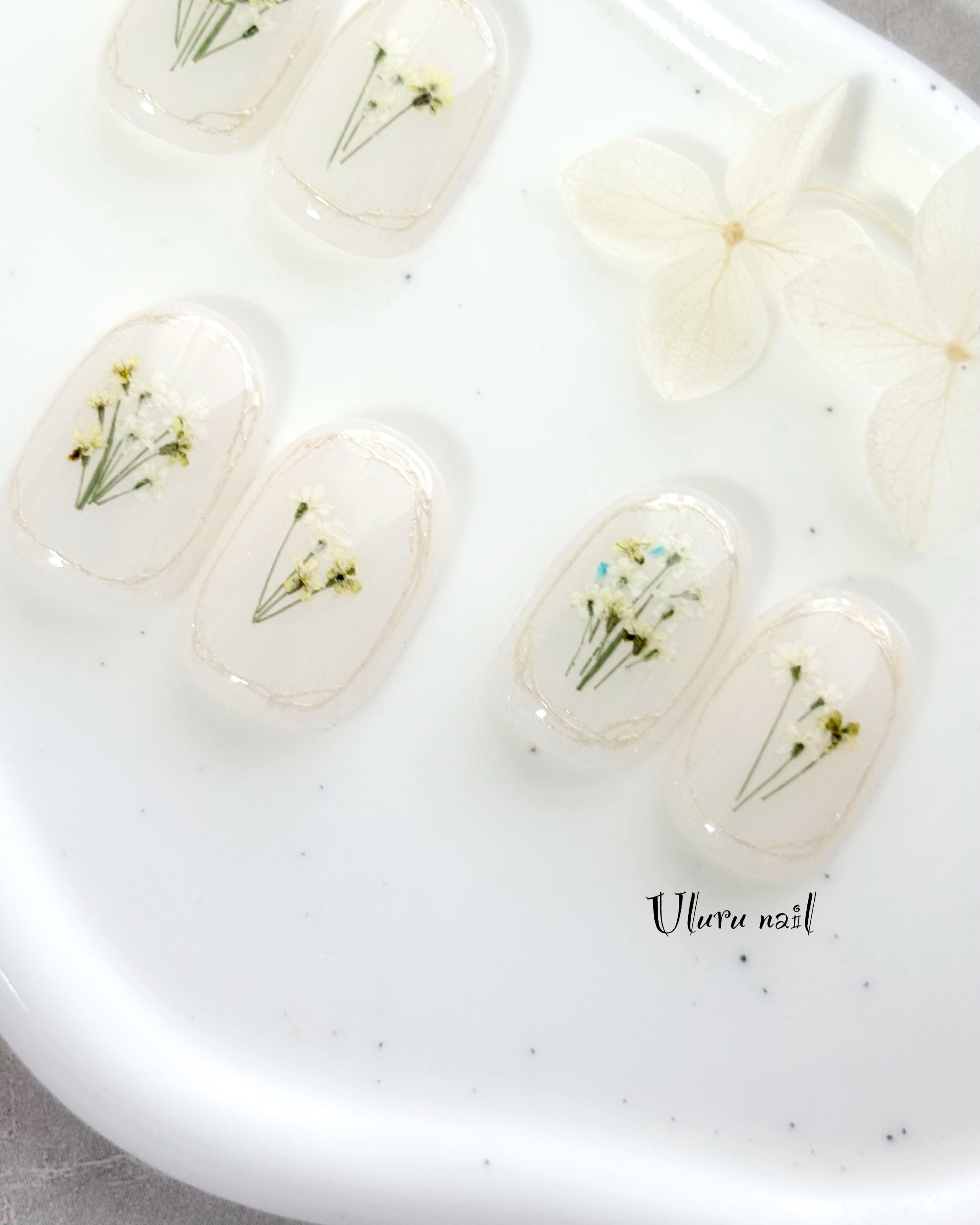 ✳︎ 本物の押し花を埋め込んだネイルチップです。