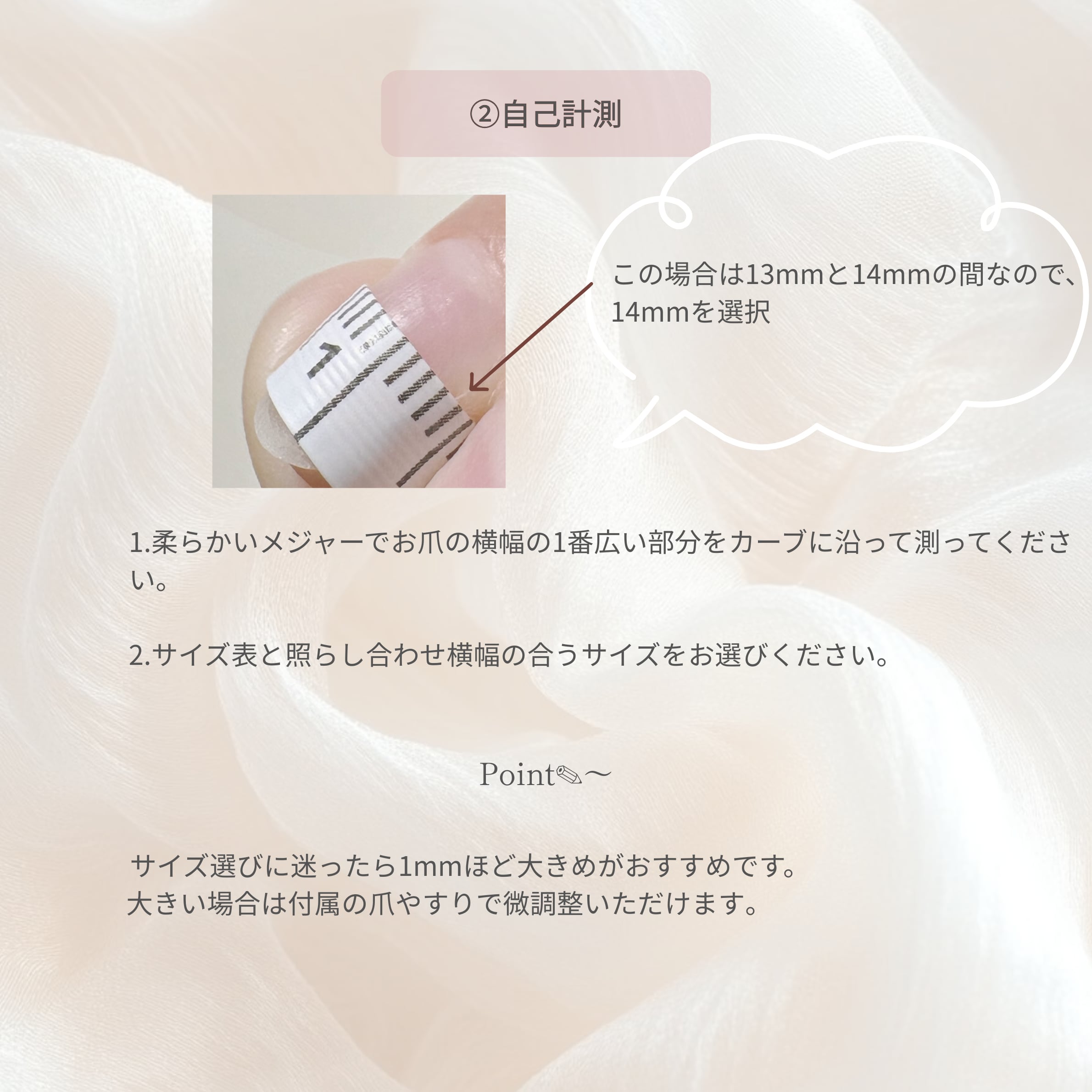 ⚠︎爪の横幅はご自身でも計測いただけますが、 自己計測の場合は1サイズ程度の誤差が出ることがあります。