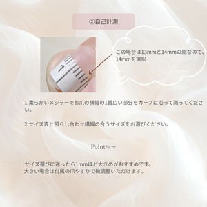 お爪のサイズを測っていただき、ご自身にぴったりのサイズのネイルチップをお届けするメニューとなります。