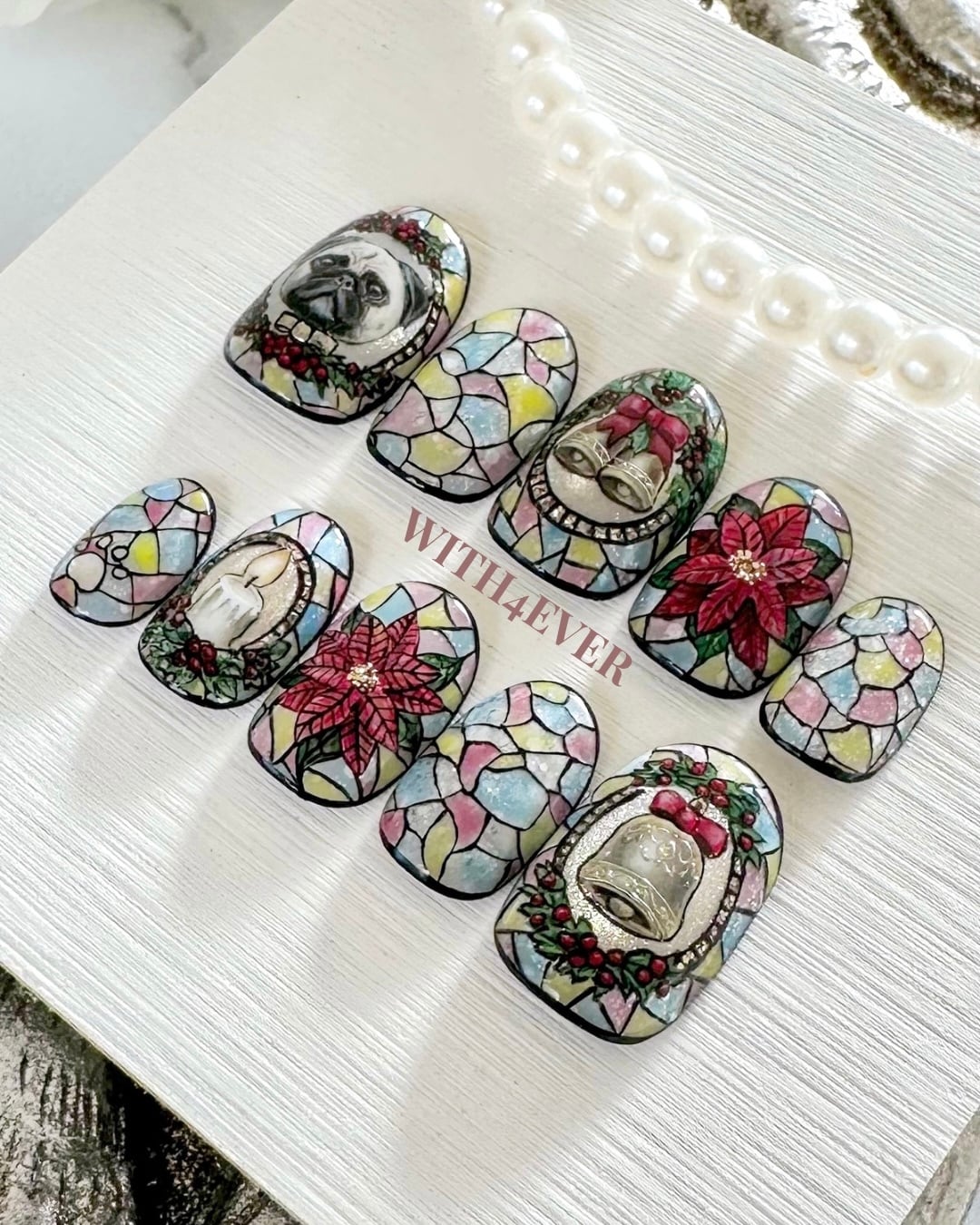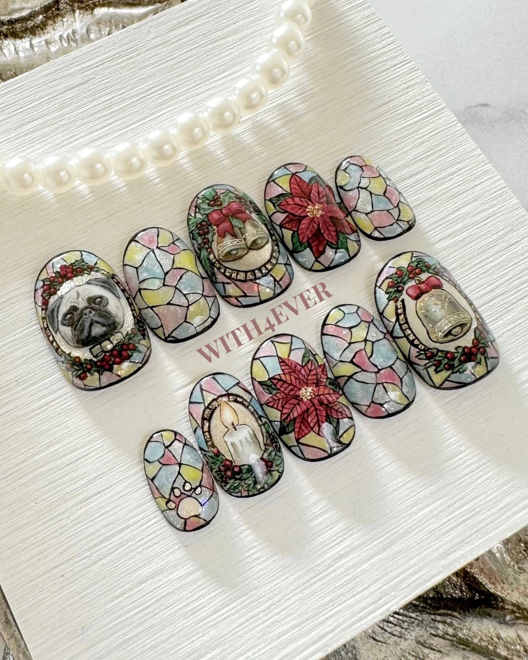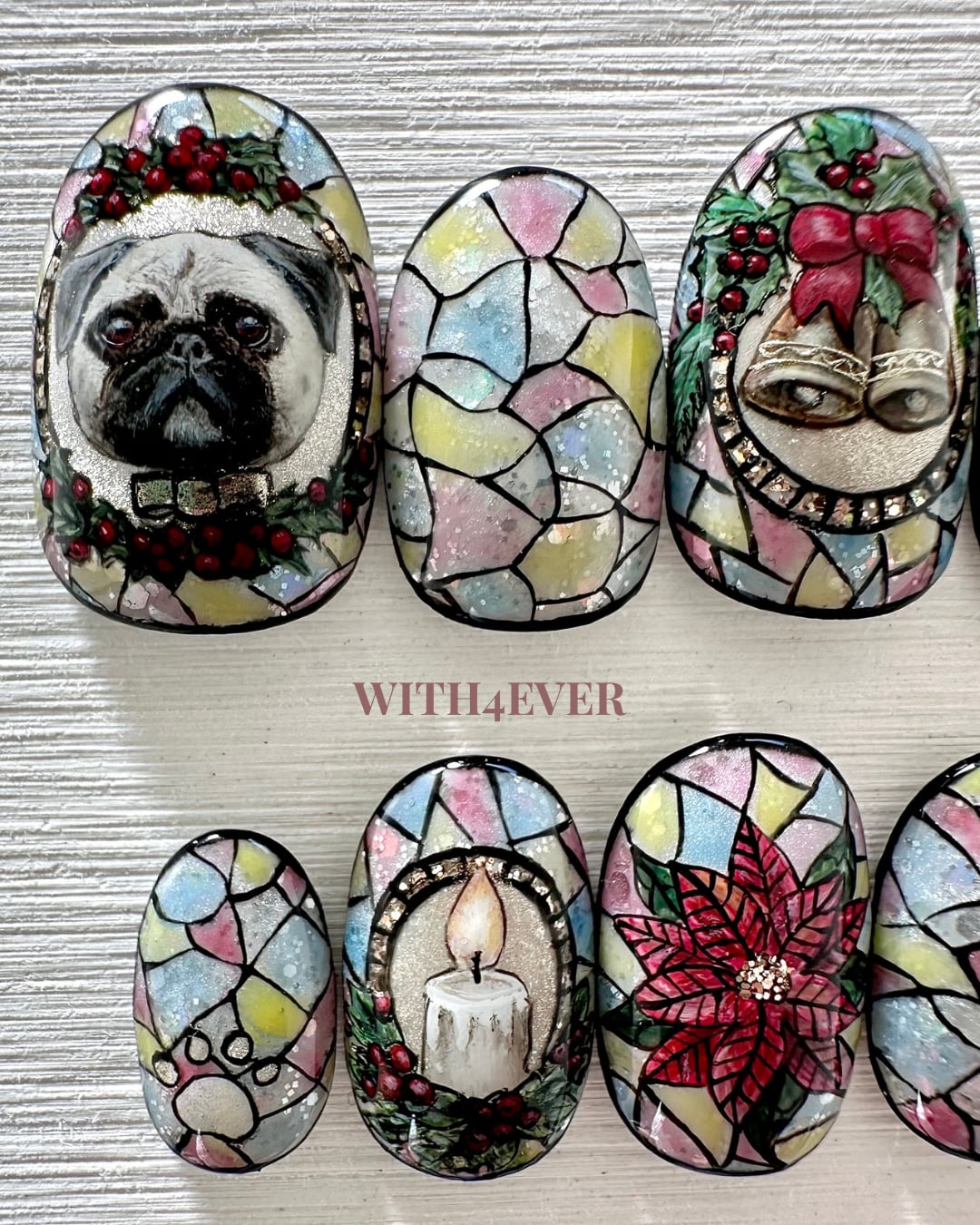 愛犬似顔絵【手描きアート】オーダーメイドネイル|うちの子ステンドグラス#ncs020