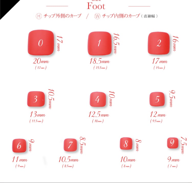 すでにネイルマップ規格のサイズ番号がわかる方は、下記のようにご指定ください。