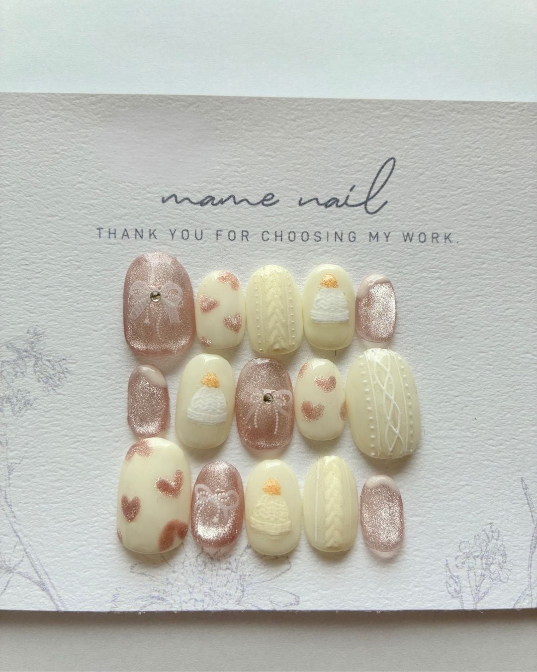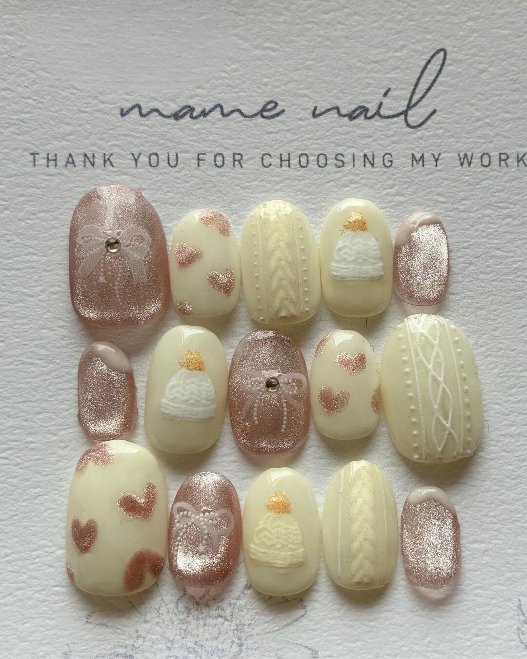 【完成品】ニットとリボンと帽子 15枚 ネイルチップ セット #ncs025