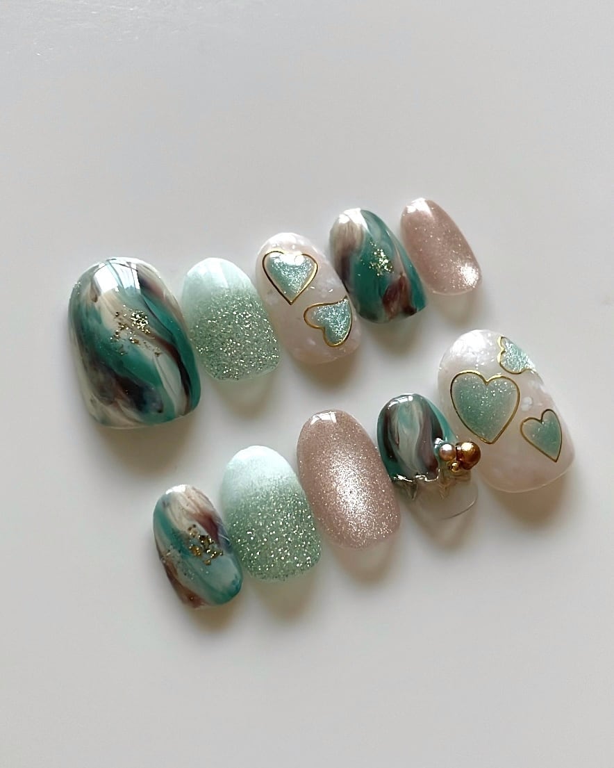 ネイルチップ ハート バレンタイン マグネット チョコレートネイル チョコミント ピスタチオ グリーン #ncs006