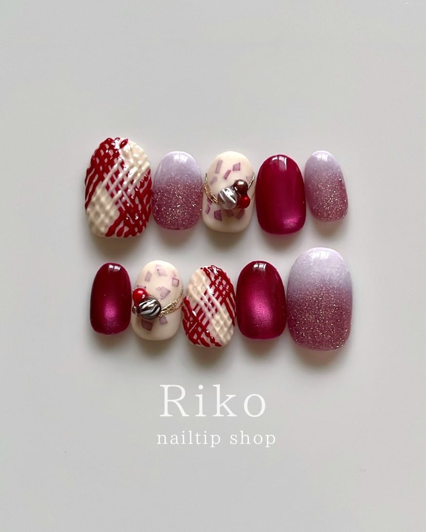 ネイルチップ バレンタイン マグネット チョコレートネイル ベリー 赤 ピンク #ncs006