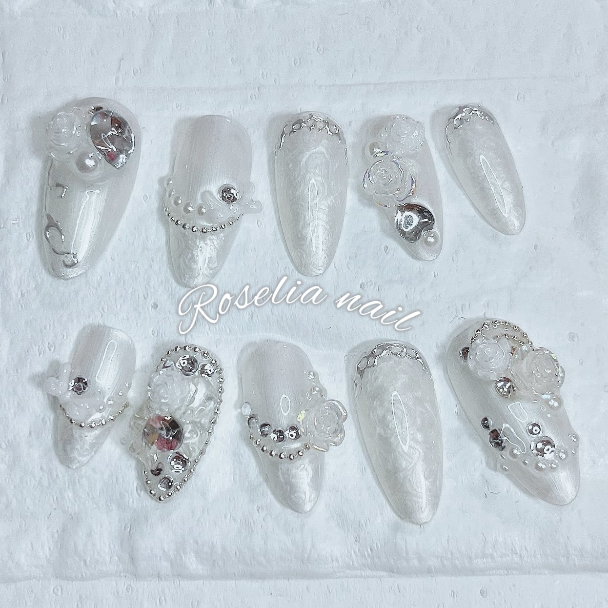 ホワイトパールのゴージャスネイルです(⋆ᴗ͈ˬᴗ͈)”