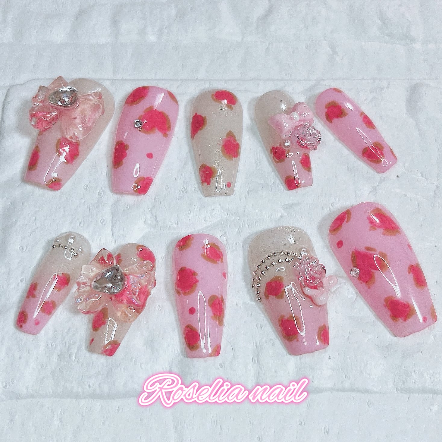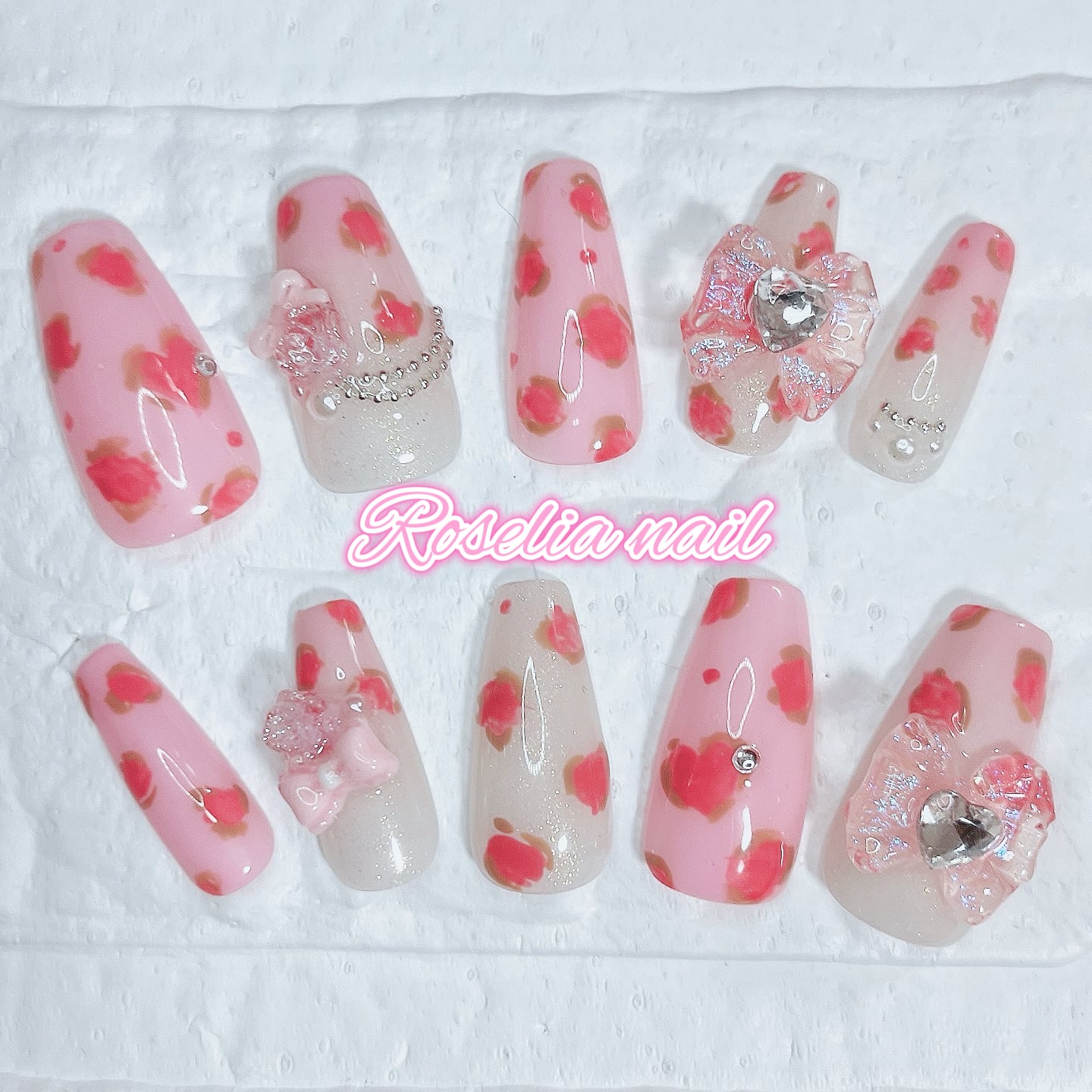 甘め ミルキーピンク ヒョウ柄 ギャル 姫ギャル 個性派 派手 可愛い 韓国 ネイルチップ