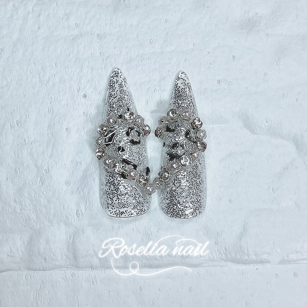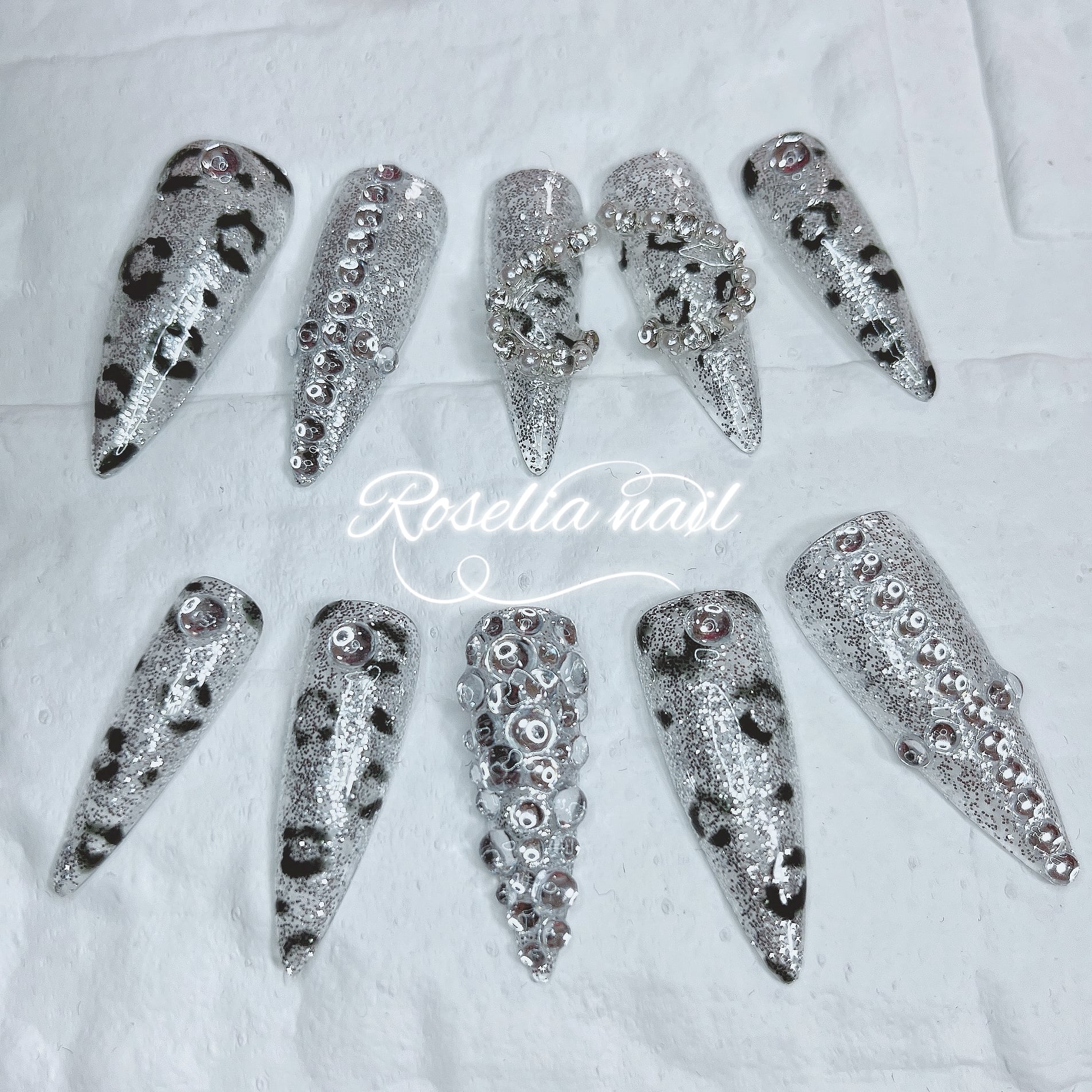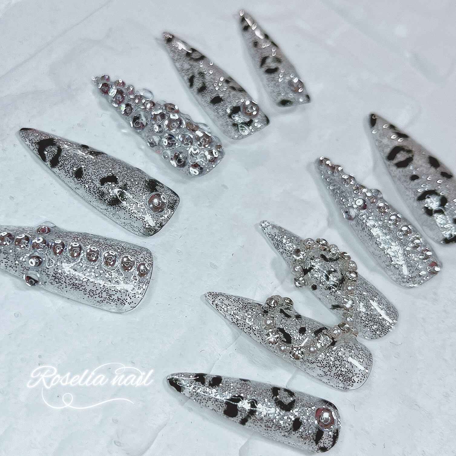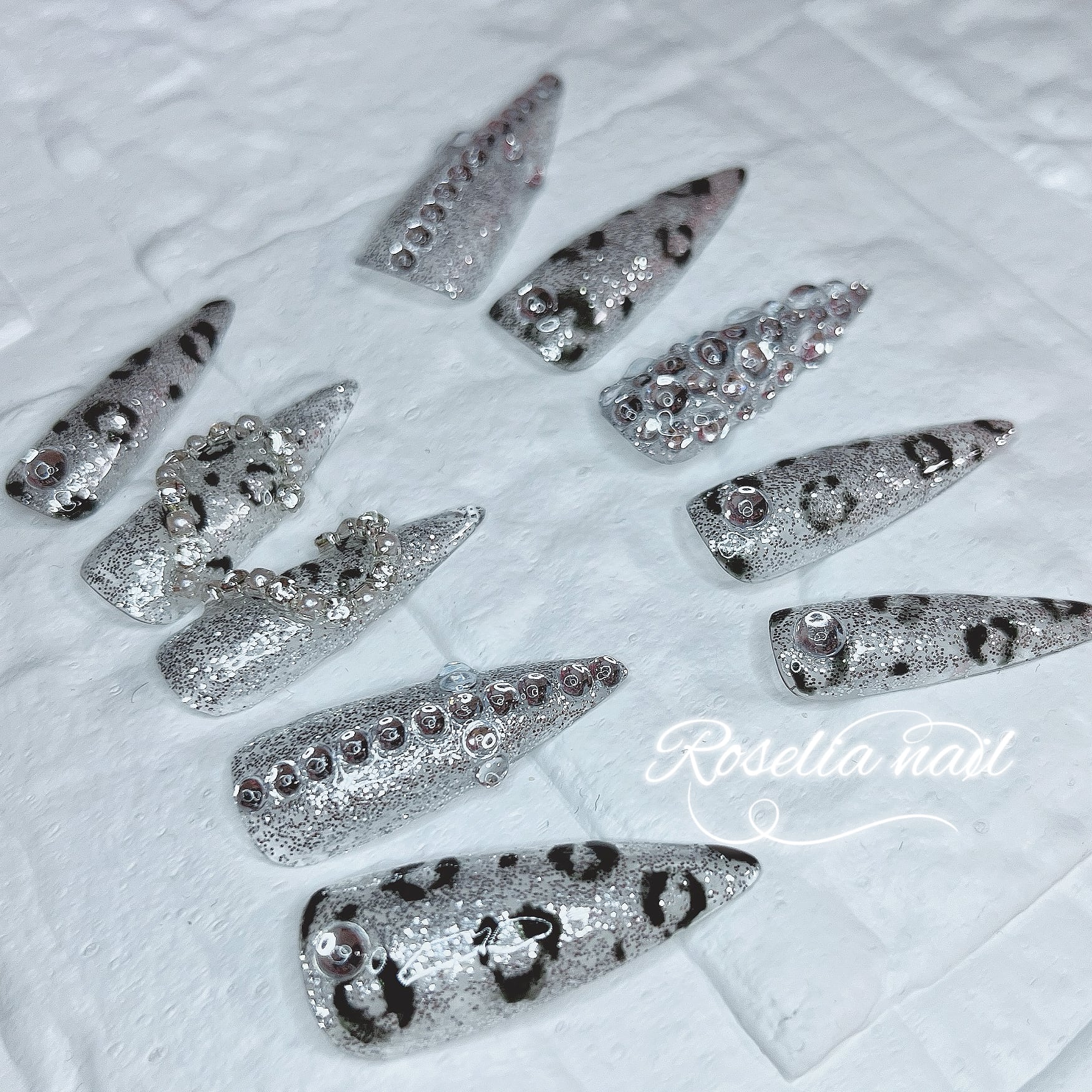 シルバーのギラギラヒョウ柄ギャルネイルです☆*。