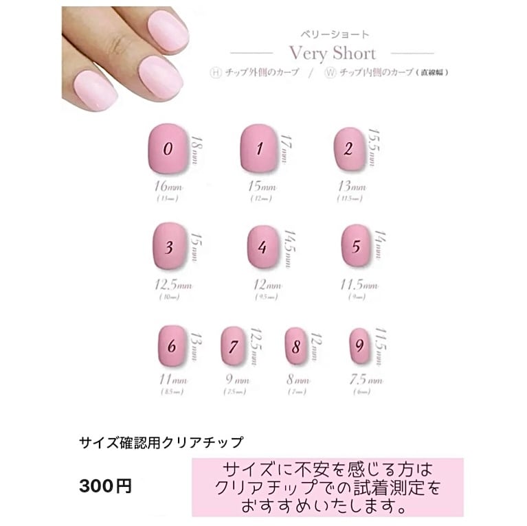 実際のチップでのサイズあわせをご希望の場合はオプションの「計測用クリアチップ」(+¥300)をお求めいただけます。