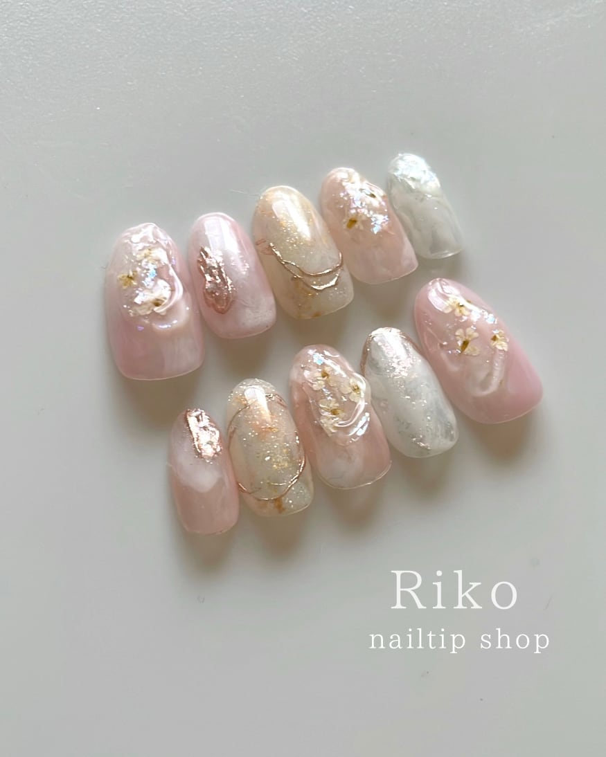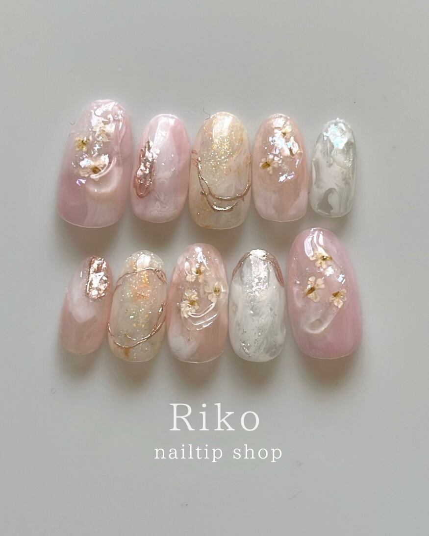 ネイルチップ 結婚 ブライダル お呼ばれ 春 押花 マグネット ニュアンス ピンクネイル #ncs006