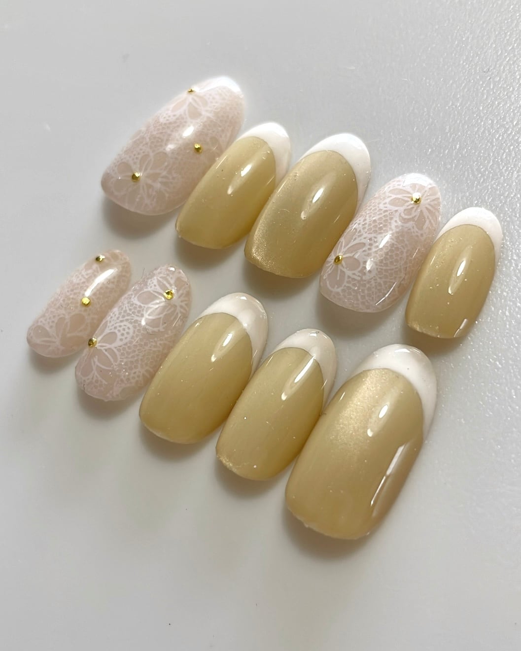 ネイルチップ レース フレンチ バターイエロー マグネット 春 #ncs006