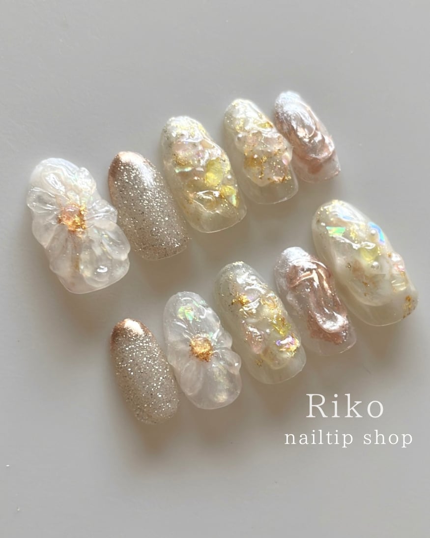 ネイルチップ ニュアンス 透明感 うるうる ぷっくり ブライダル お呼ばれ 春 #ncs006