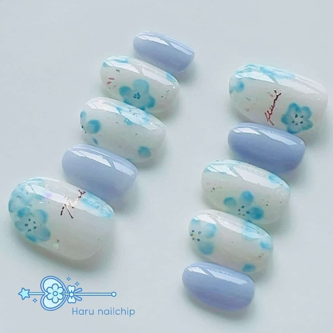 <セミオーダー>ネモフィラミルクラテ|ふんわり春のフラワーネイル|ネイルチップ#ncs023
